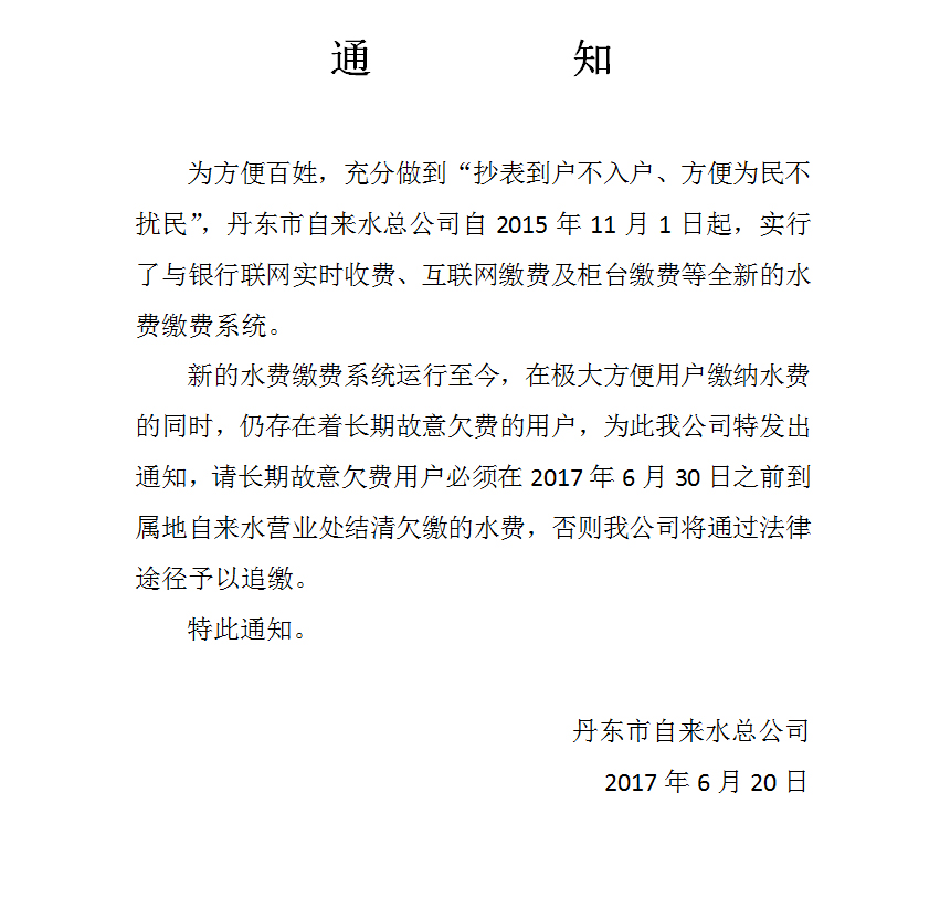 丹東市物價(jià)局關(guān)于調(diào)整城市居民生活用水價(jià)格并實(shí)行階梯水價(jià)制度的通知2017-06-15